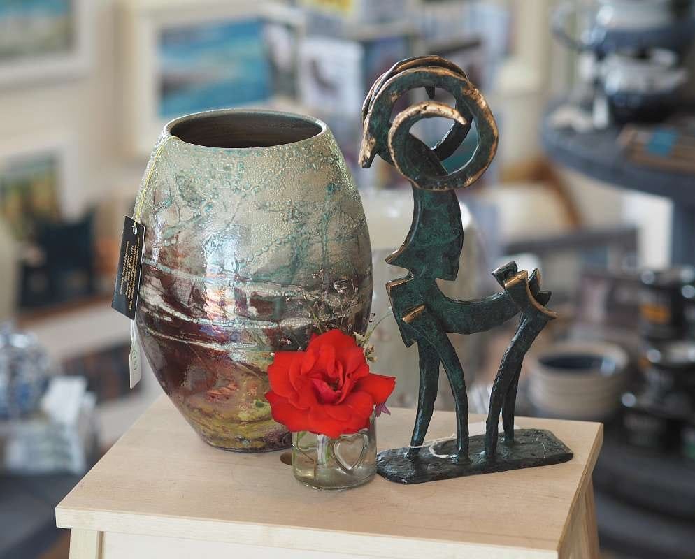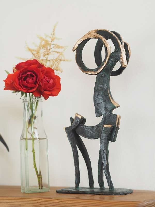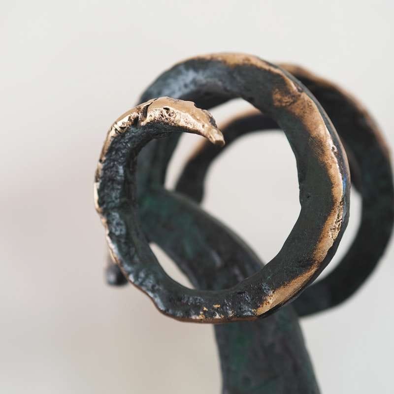 • Bronze with a dark green patina