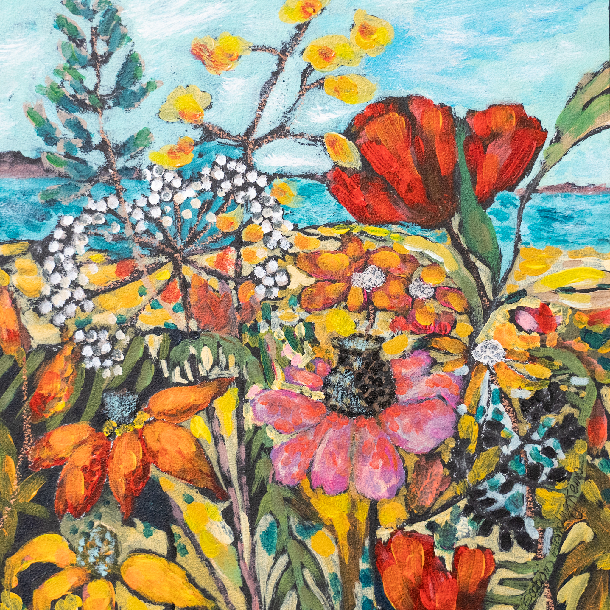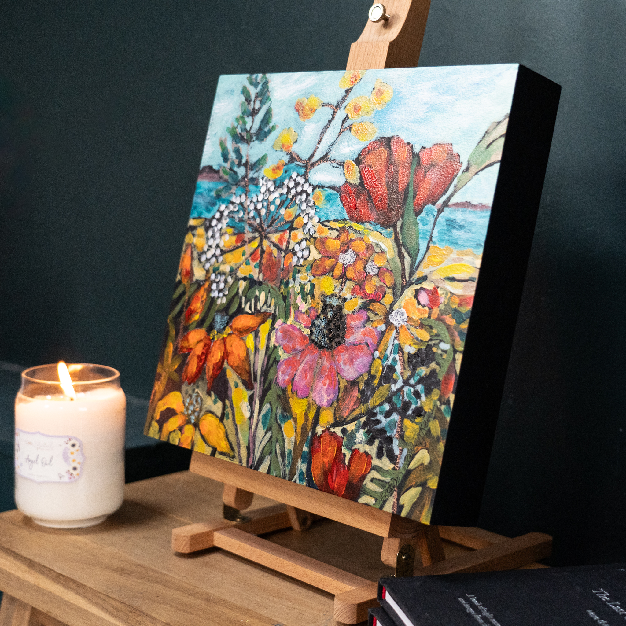 One of Eadaoin’s signature styles, is to play with perspective; particularly when it comes to her paintings of nature; placing some of the beautiful and more striking elements right in the immediate foreground and then taking your eye off into the rest of the painting in the distance. Eadaoin also draws on her expert knowledge of colour by bringing striking, rich tones to her work.