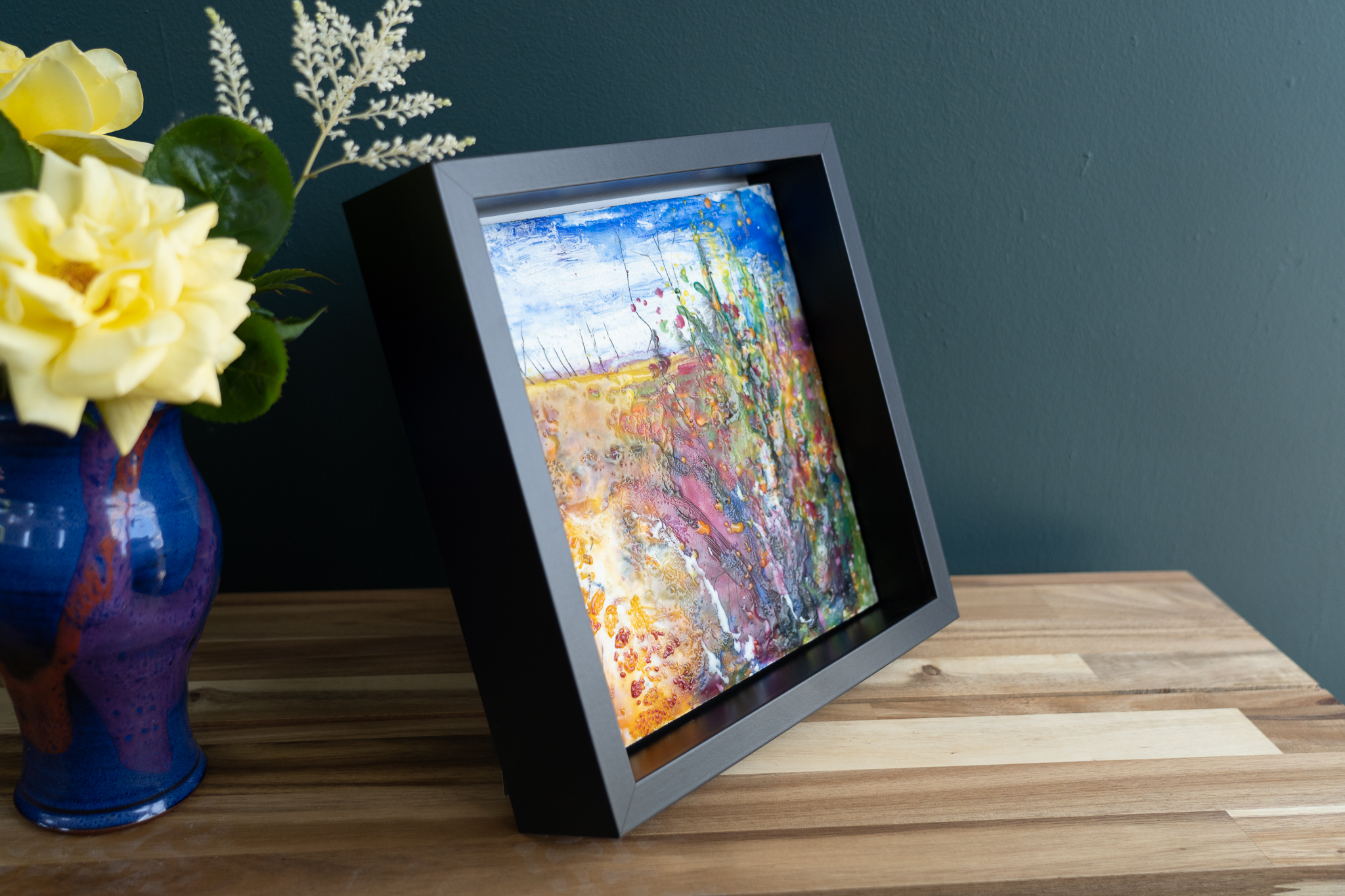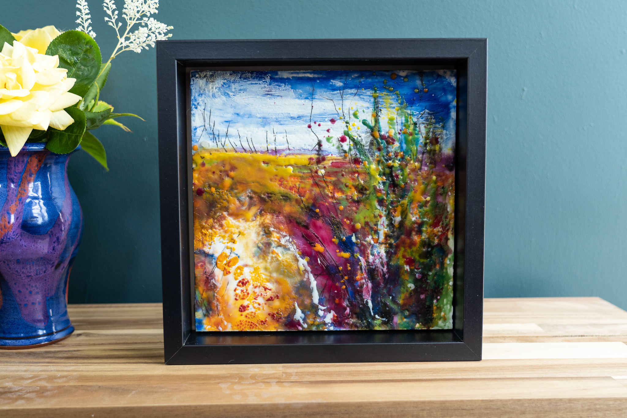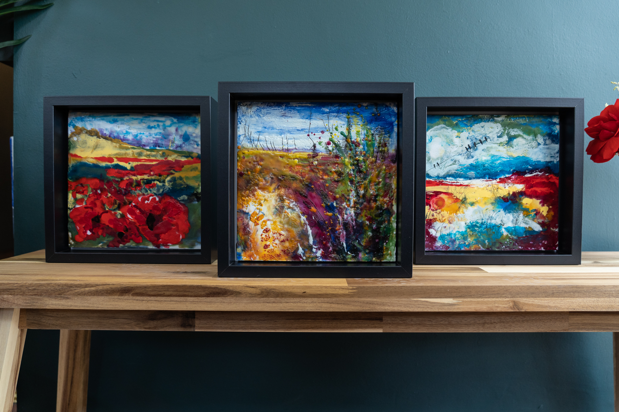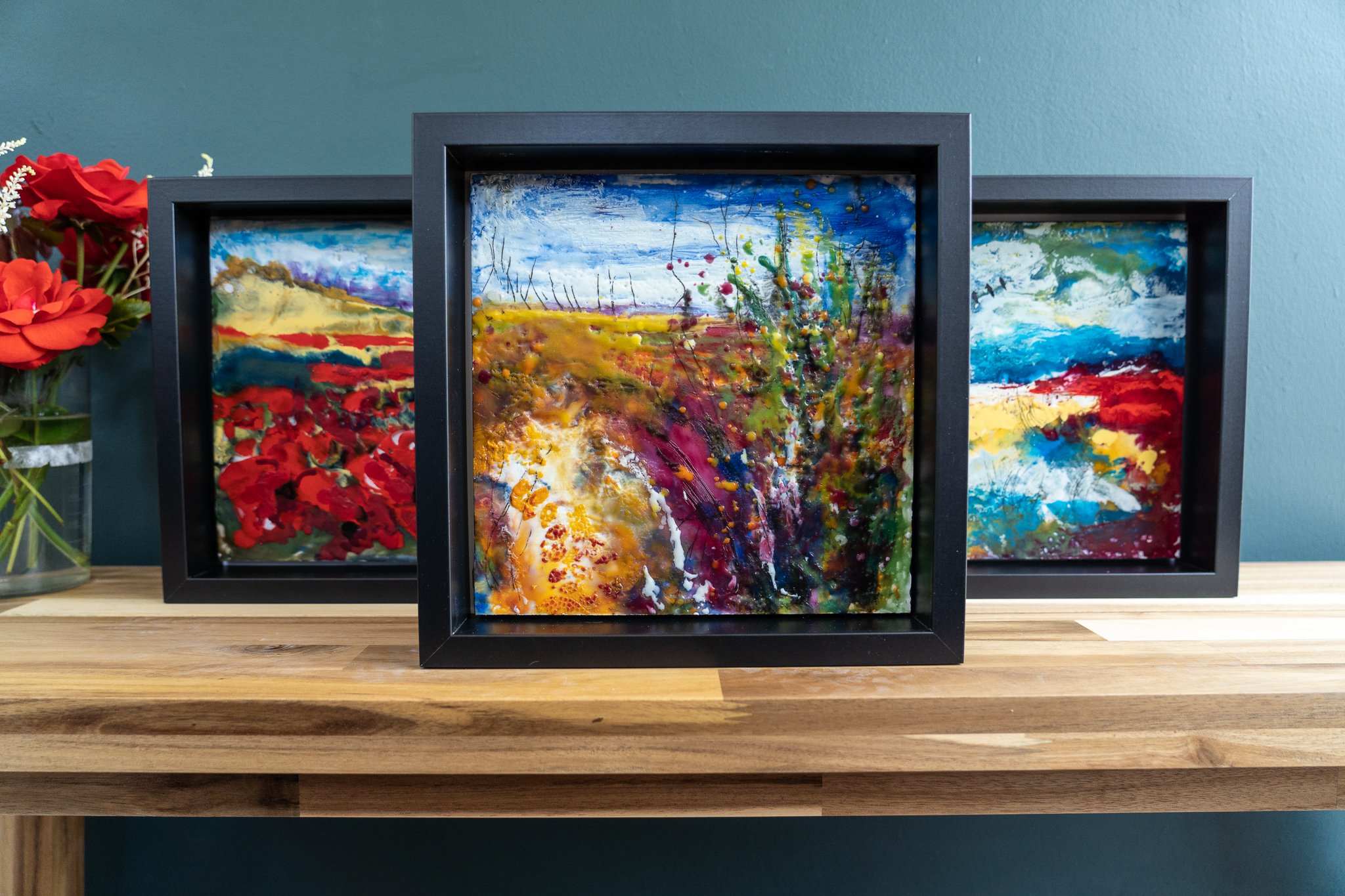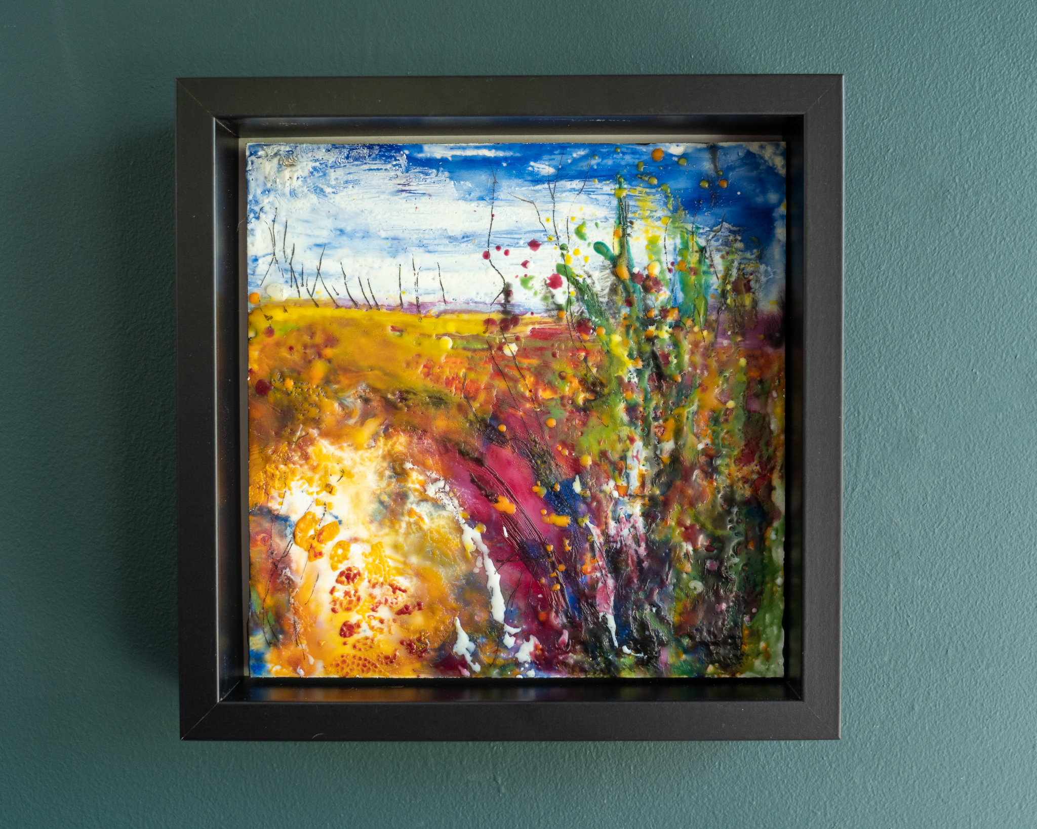 Encaustic Art is an ancient medium using molten pigmented beeswax. It’s an immediate and tactile method of painting, as when the layers of wax are laid, using a blow torch, the effect is dramatic and immediate.
