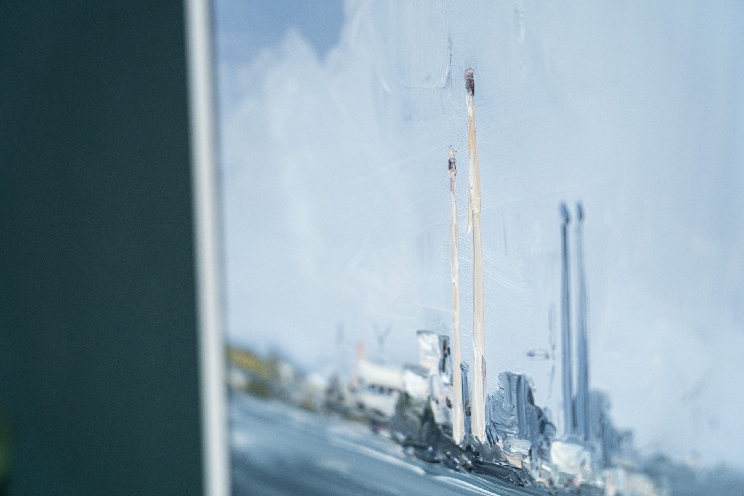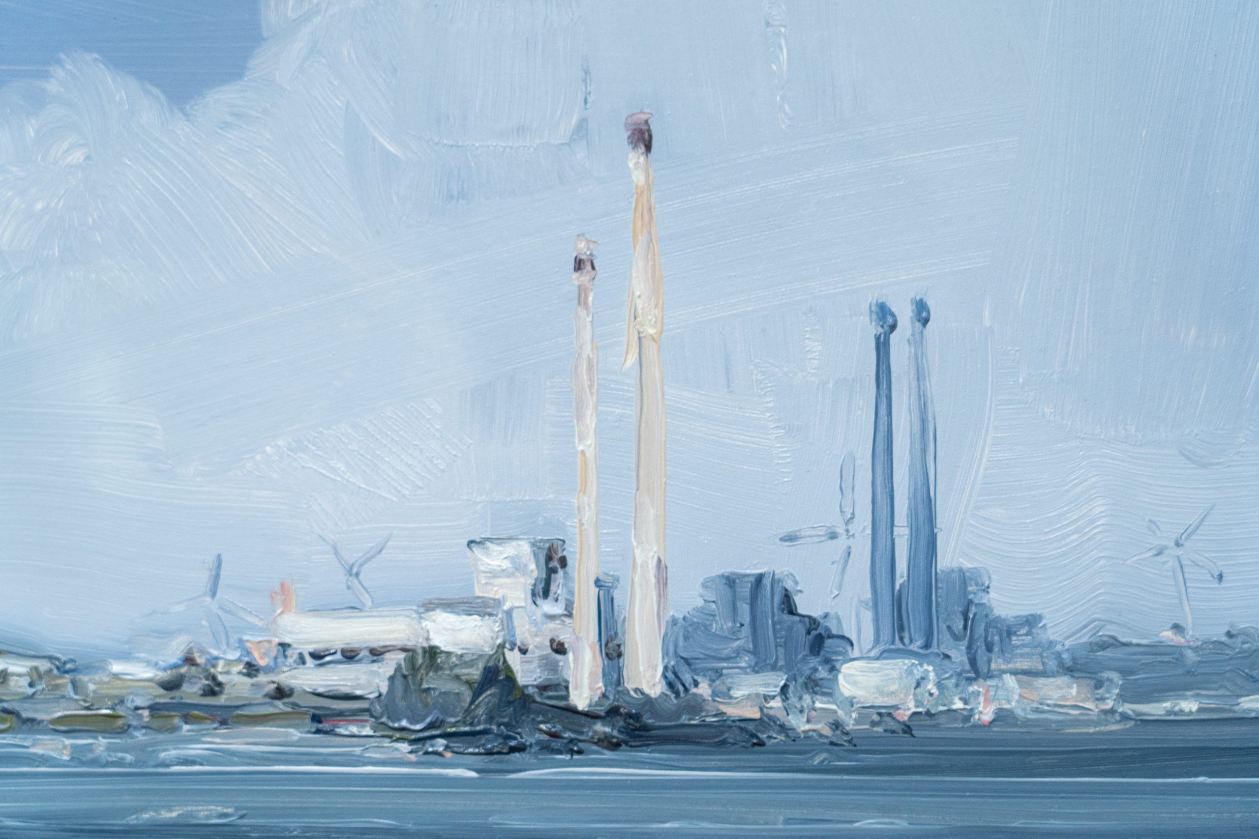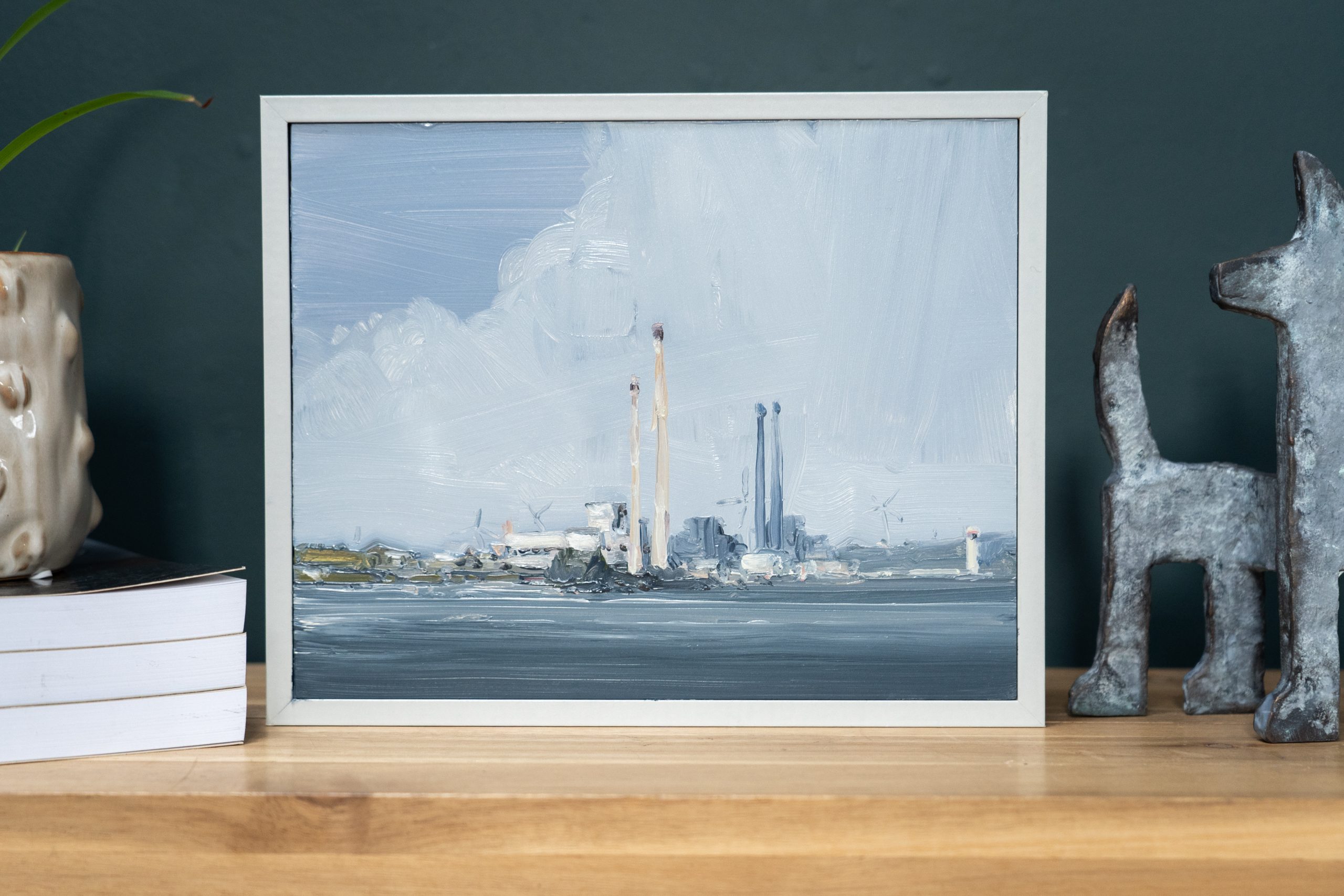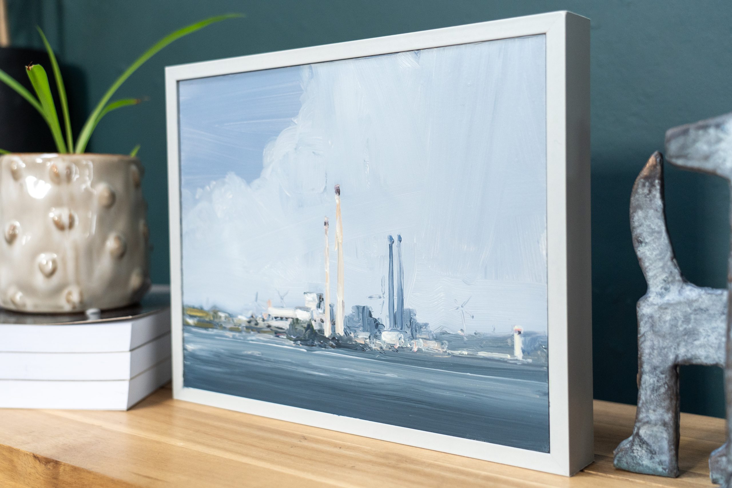 Stunning work – this is a truly gorgeous and collectable oil painting by the contemporary artist Kaye Maahs of Tarbert, in Storm Debbie. Love when Kaye introduces such industrial elements to her work.
