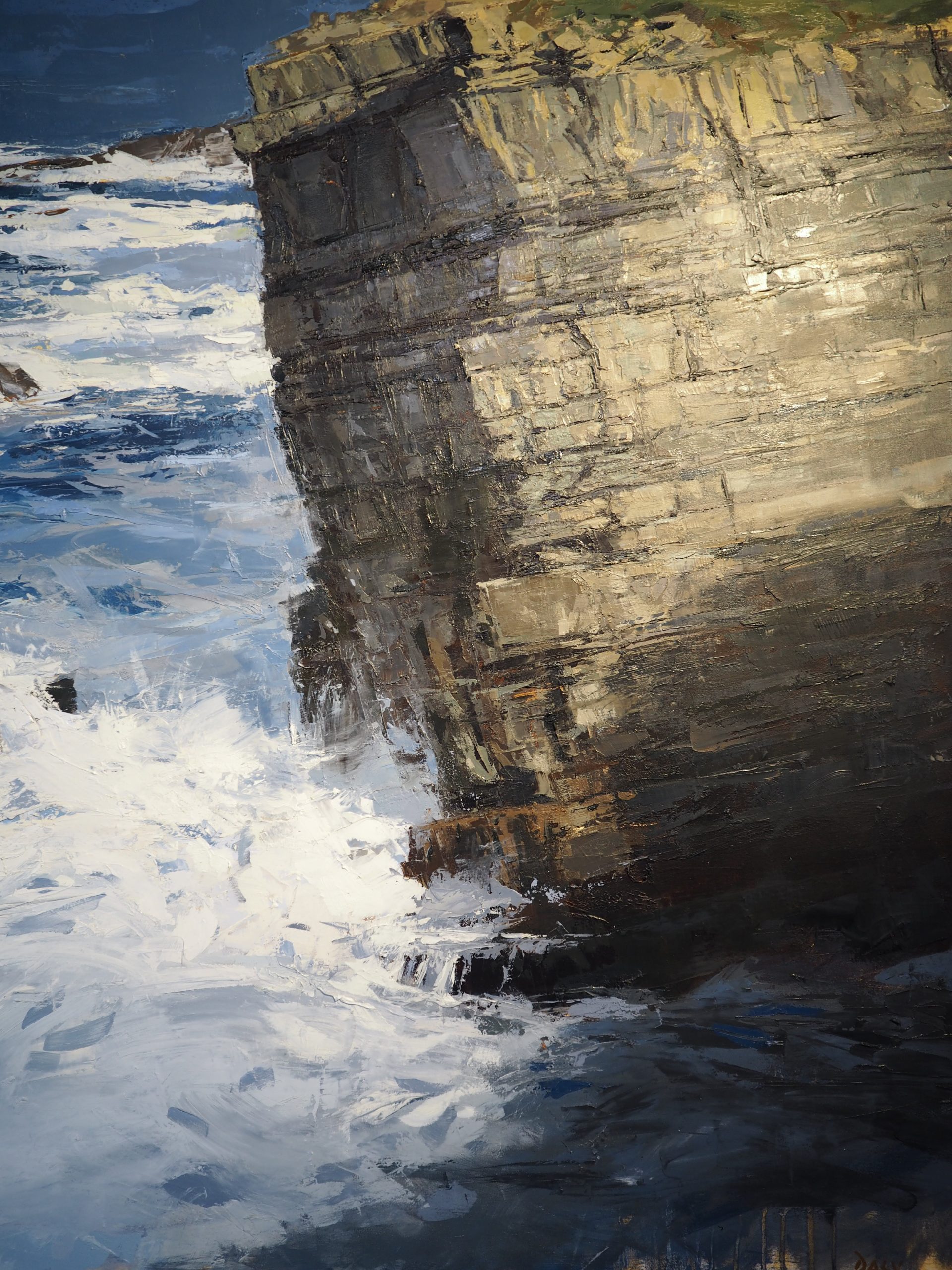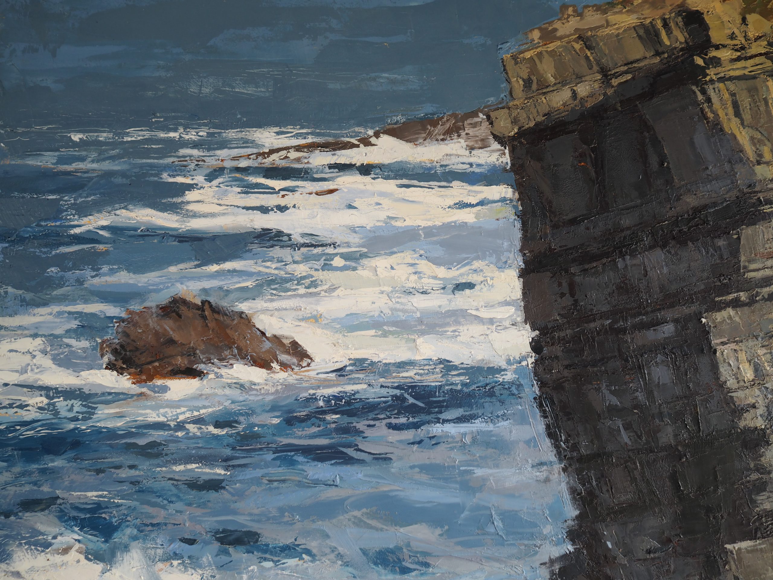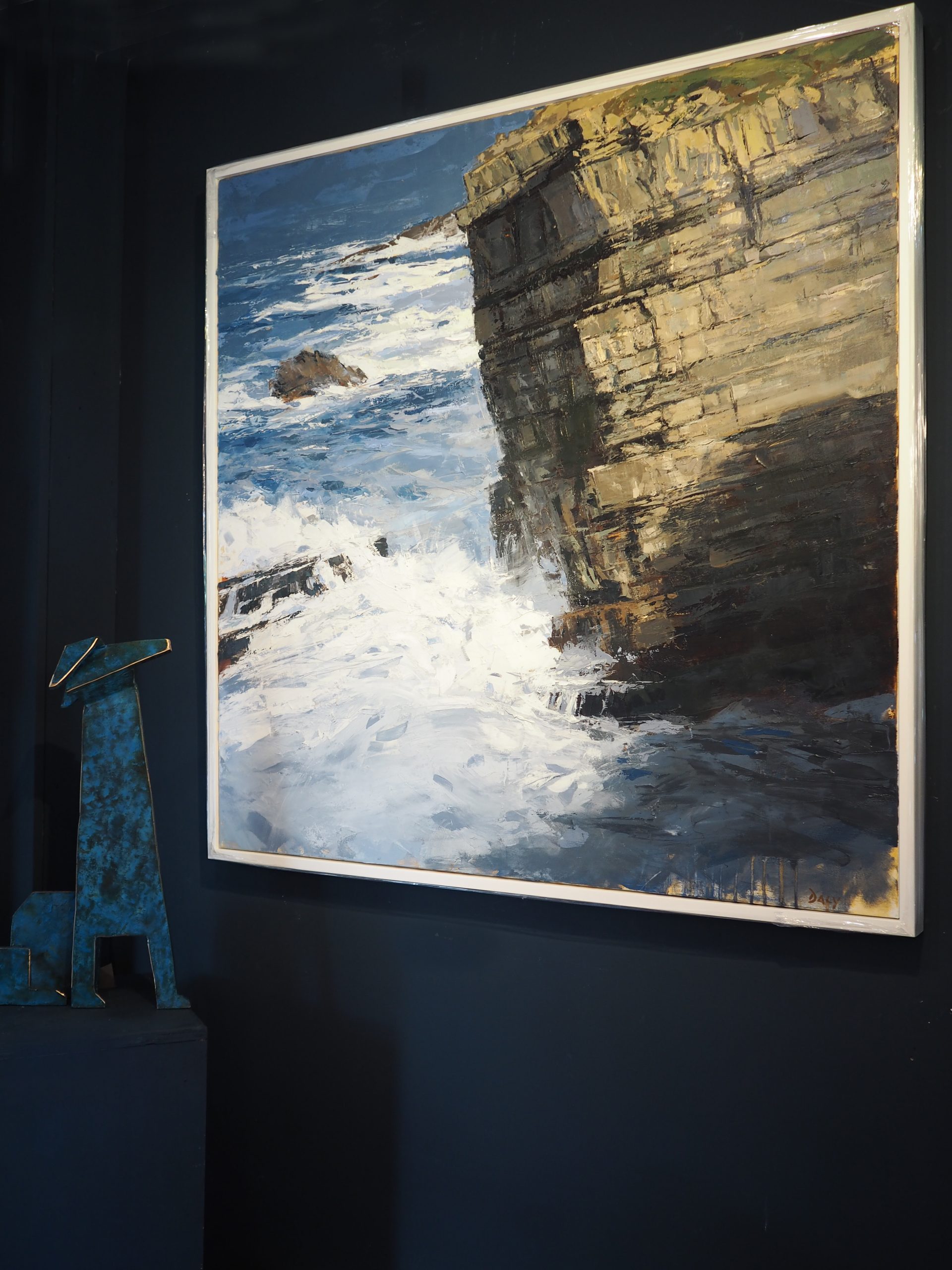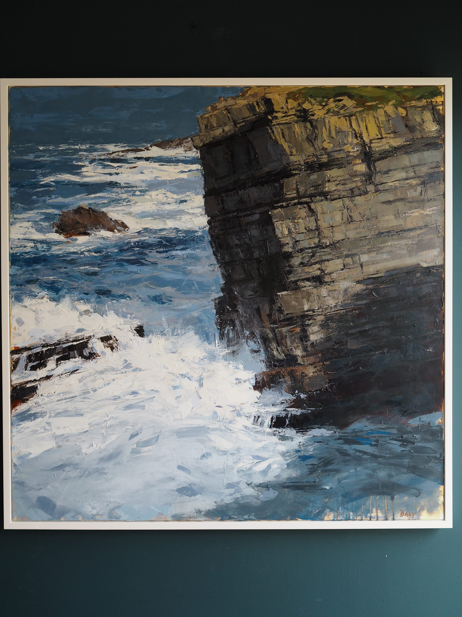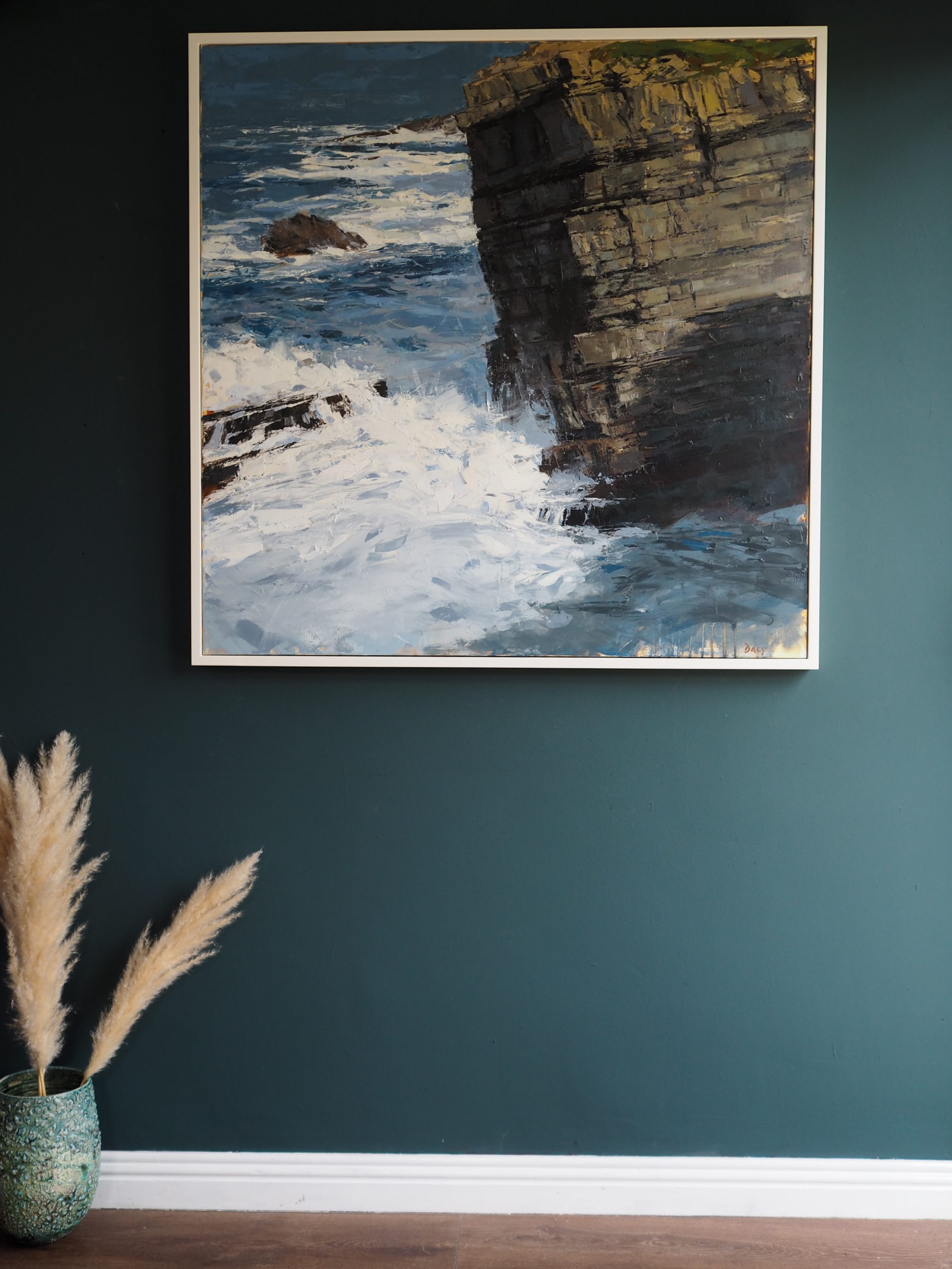 The drama of the ocean, the scale of the headland, the light and shade of the rock – all compounded by the sheer scale of this piece of original art, which stands at just over a metre squared.