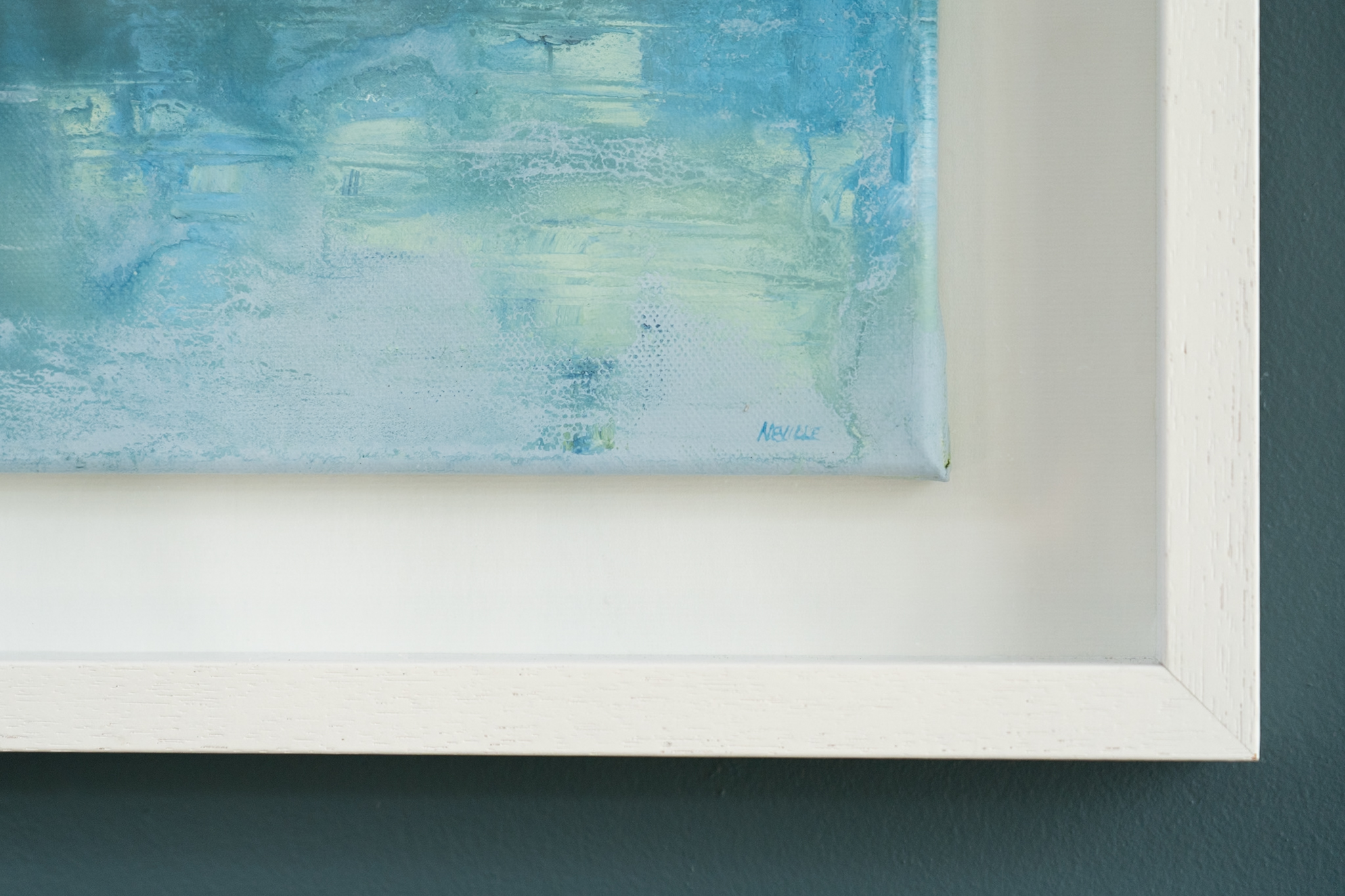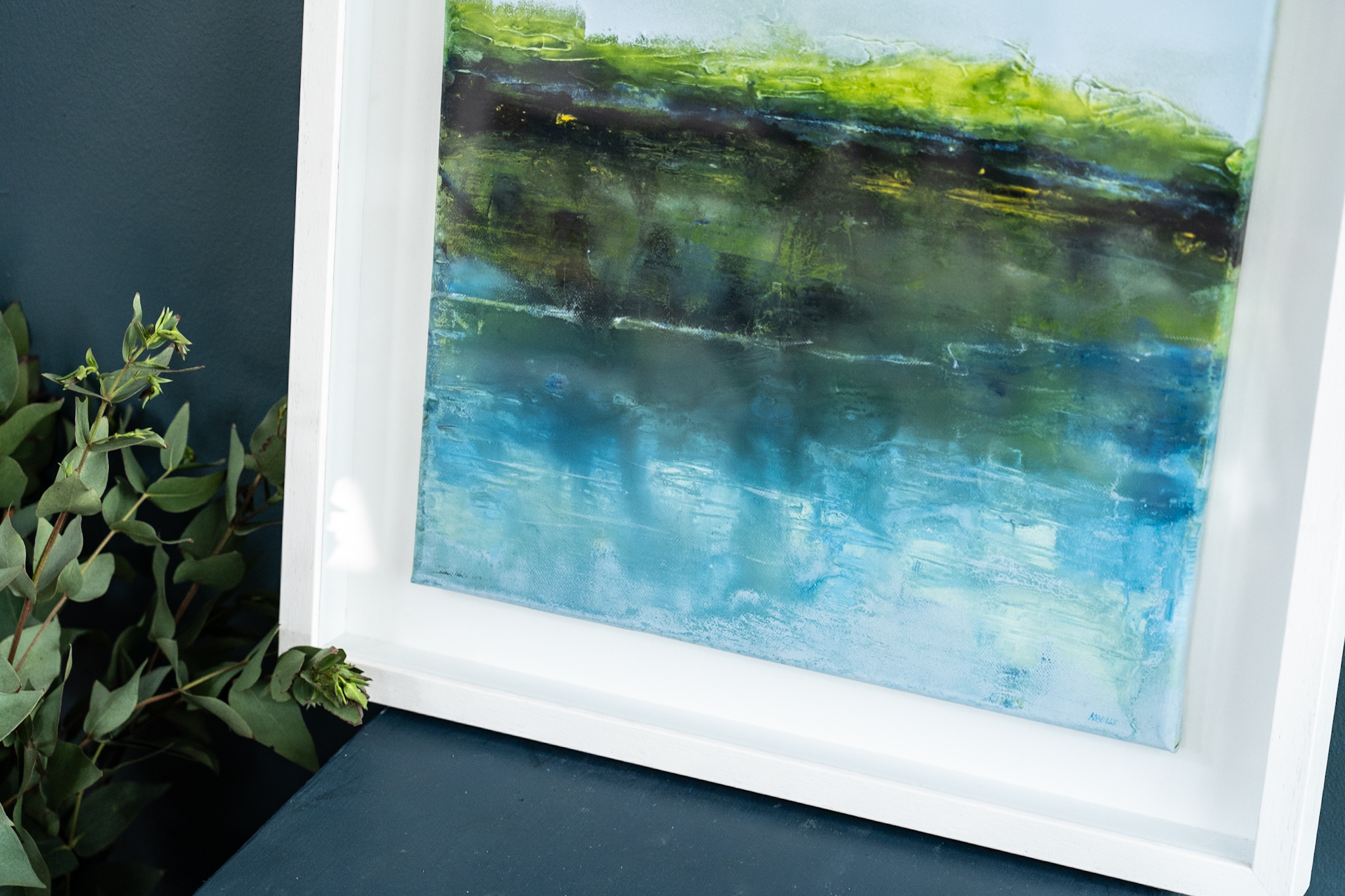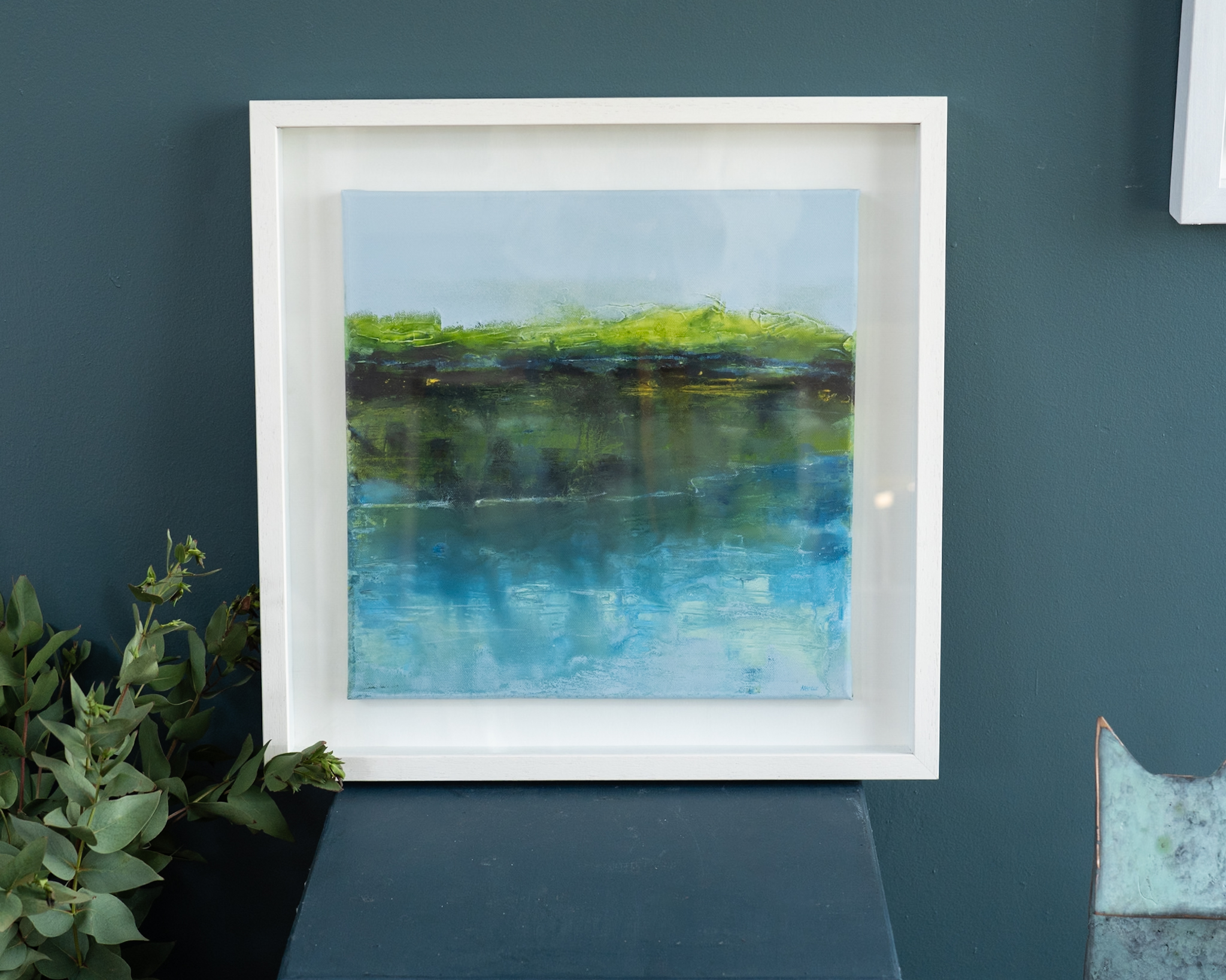 Land and Sea Meet – 21″(53cm) x 21″(53cm) measurements include the frame – framed behind glass