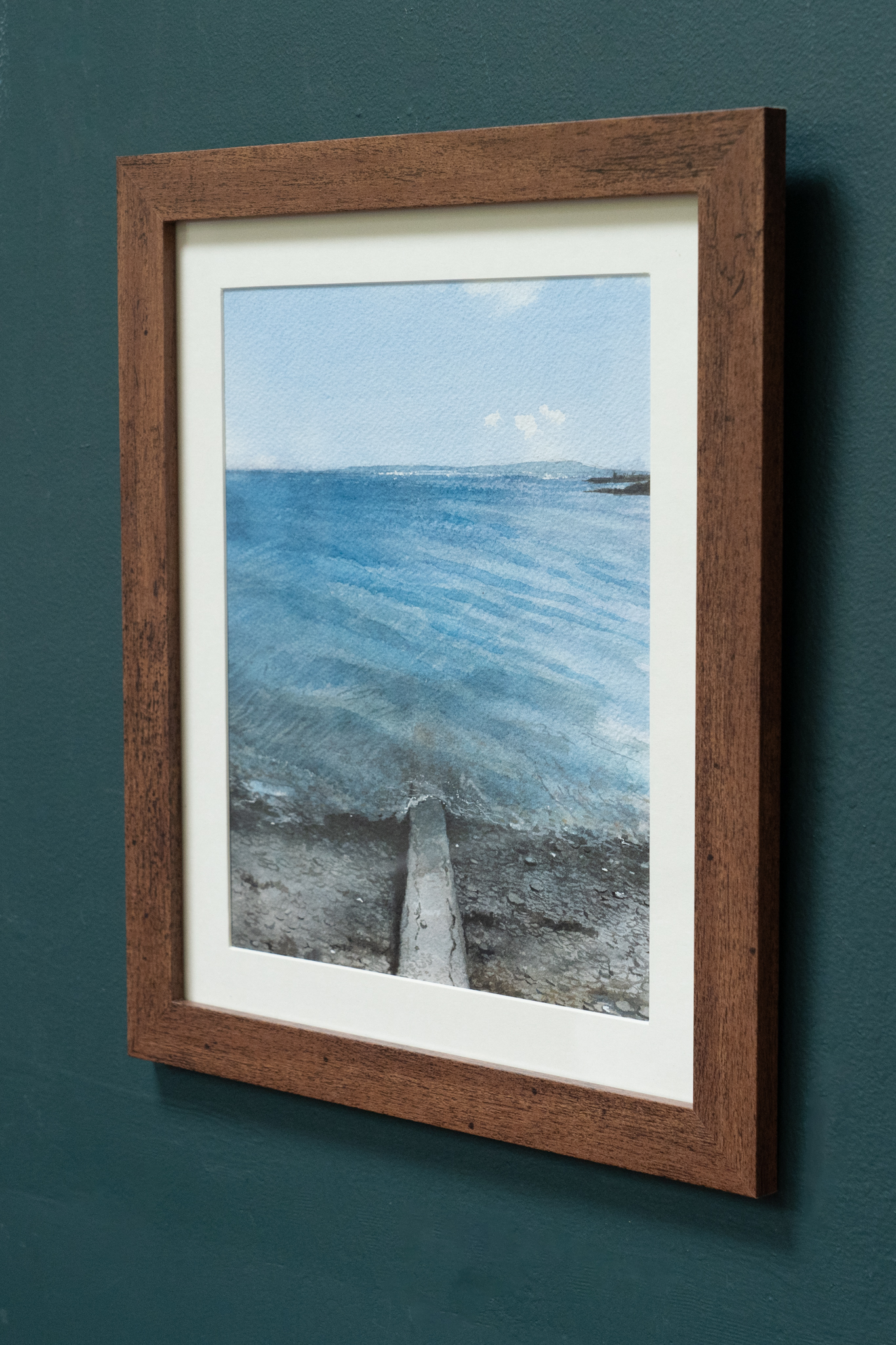 Lovers of Cappa, West Clare, will be very familiar with this popular swimming spot.   ‘The Rock’, is a narrow strip of concrete that stretches out into the water, famous for providing easy access for swimmers across the stony beach and into the sea (the Shannon Estuary). The West Clare artist, signing their work only as ‘D’, has captured this well known landmark here with expert precision and wonderful detail. Depicting a colder evening, the darker skies, the gently choppy water and the grey of the stones, gives you a true sense of this winter scene.  This gorgeous aspect across the Shannon almost lures you in to the very painting itself.
