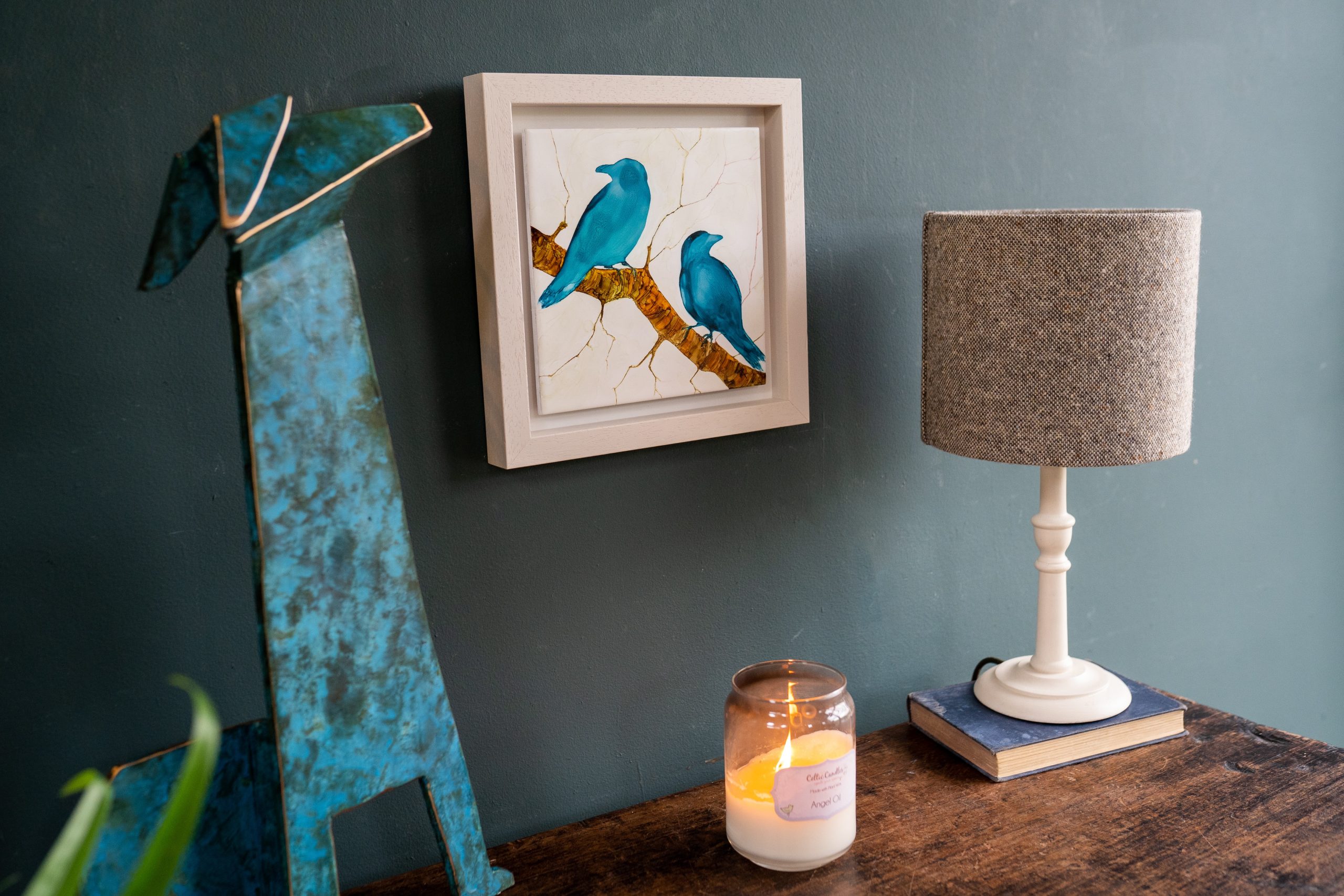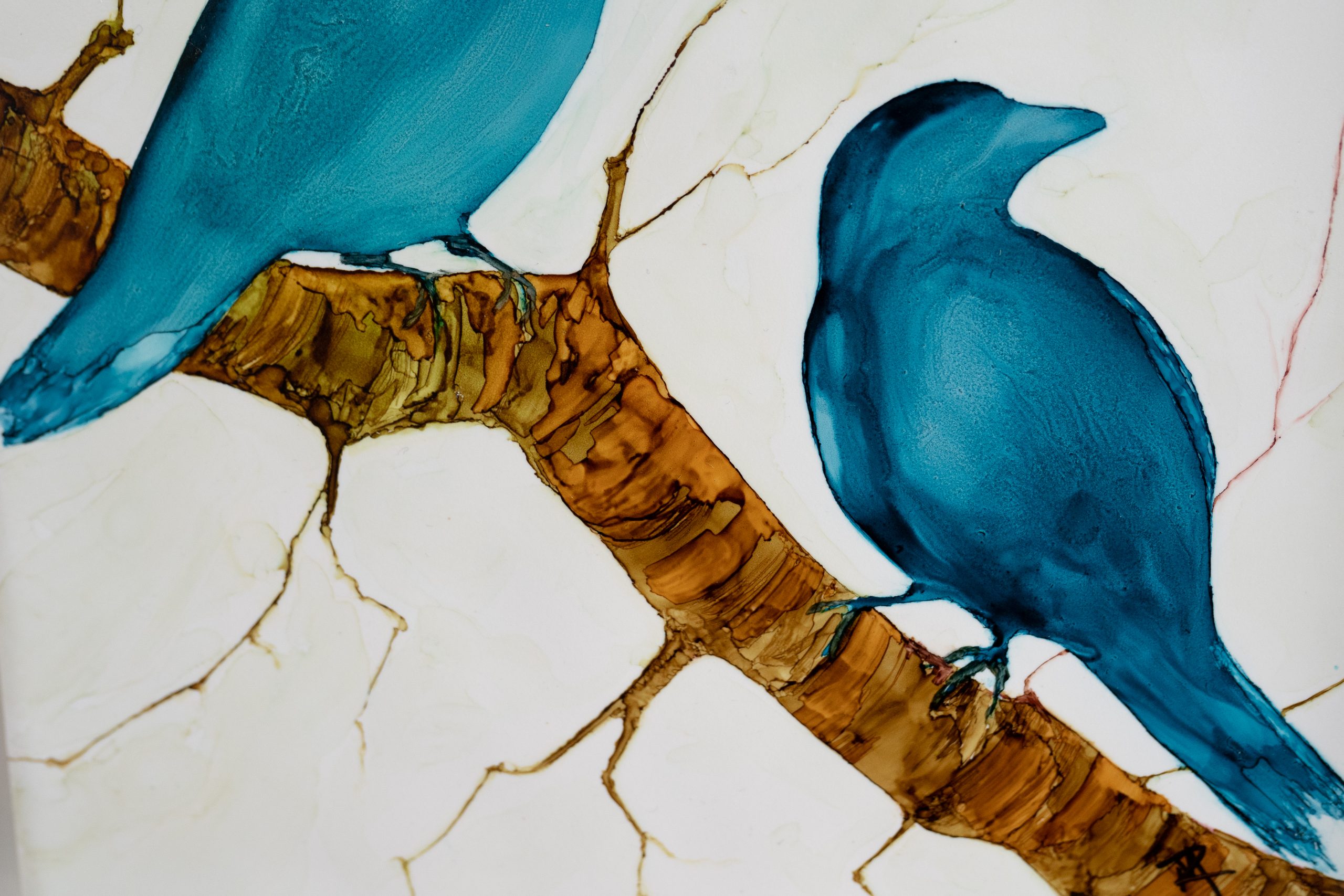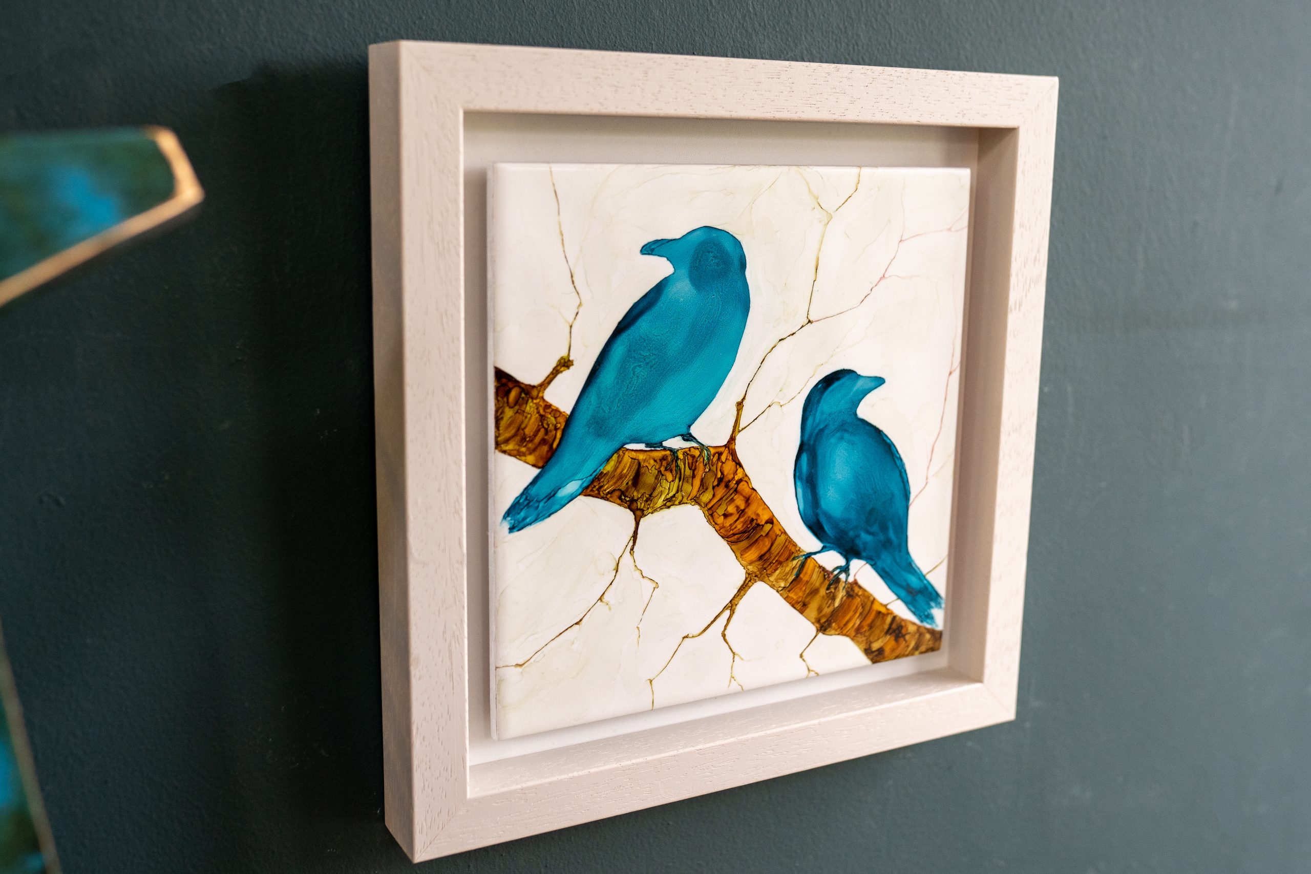 Irish Artist – Mary Roberts – Alcohol Ink on Ceramic Tile – Framed works – original pieces – beautiful depictions – delicate handling –