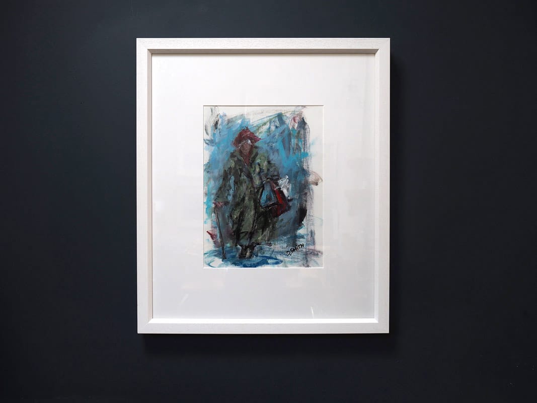 A sight we are so familiar with; the skies greying over, the stick bearing the weight and the hands raw from carrying bags. ‘The shopper’ could be any of our neighbours or relatives over the years. Another masterful delivery of brush strokes to produce a stunning almost impressionistic version of the image he wants to convey. Danny V. Smith is immensely talented at what he does. A fabulous original acrylic on parchment, framed behind glass, this is a stunning addition to any collection (looks incredible on our navy walls)