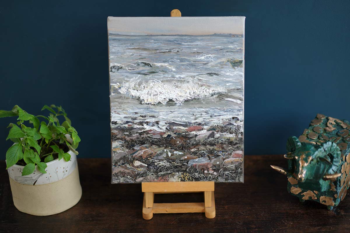 Living here on the West Coast of Ireland, the power of the sea does not go unnoticed. Apart from its expansive nature and unlimited strength, it also has another power – a beautiful and meditative one. Standing silently at the edge of the shoreline, watching those Atlantic waves crash and break, is one of the most special and mindful things one could do – and this artist truly appreciates this.