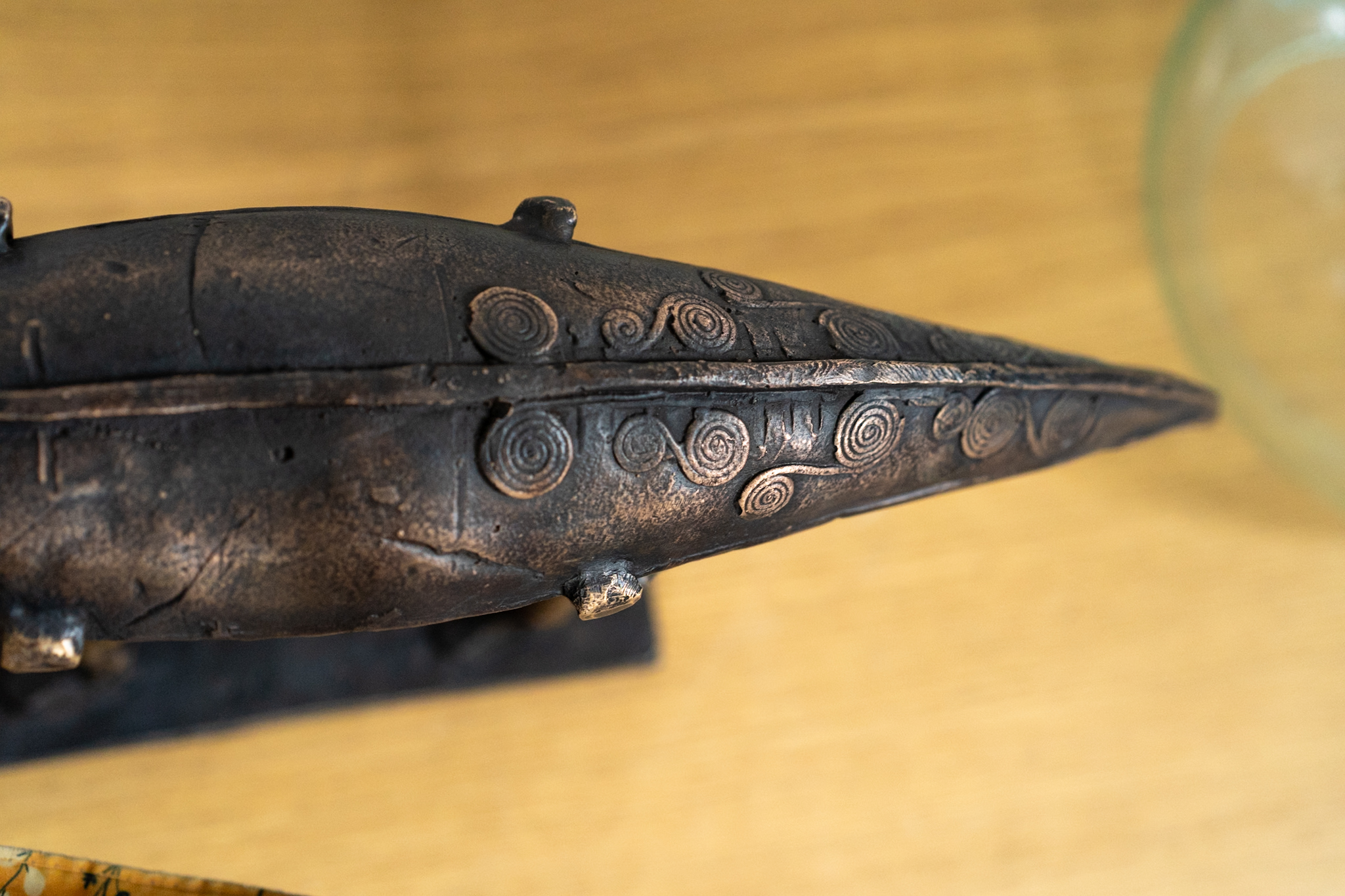 A contemporary take on what was the traditional Irish fishing boat on the West of Ireland. Clodagh Redden, a celebrated sculptor, has become truly, very well known for her contemporary currach boats – both in ceramic and in bronze. Her elongated figures, often both men and women or somewhat androgynous, are beautifully artistic and stylized and her striking boats, are unique pieces, each with individual markings and designs (thus making each piece original and unique) Clodagh’s work is highly sought after both internationally and here at home (having famously found a home in the White House).