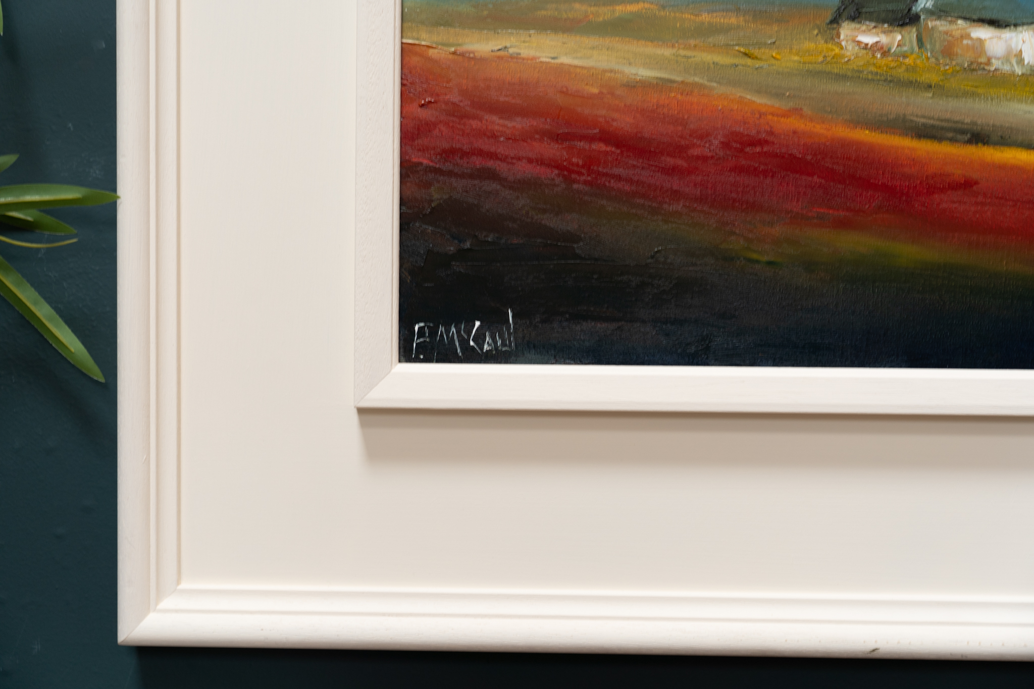 Irish contemporary art – framed – oil on canvas – McCaul – Farmhouse – Wild Atlantic Way – West of Ireland – moody sky – atmospheric – rustic colour palette
