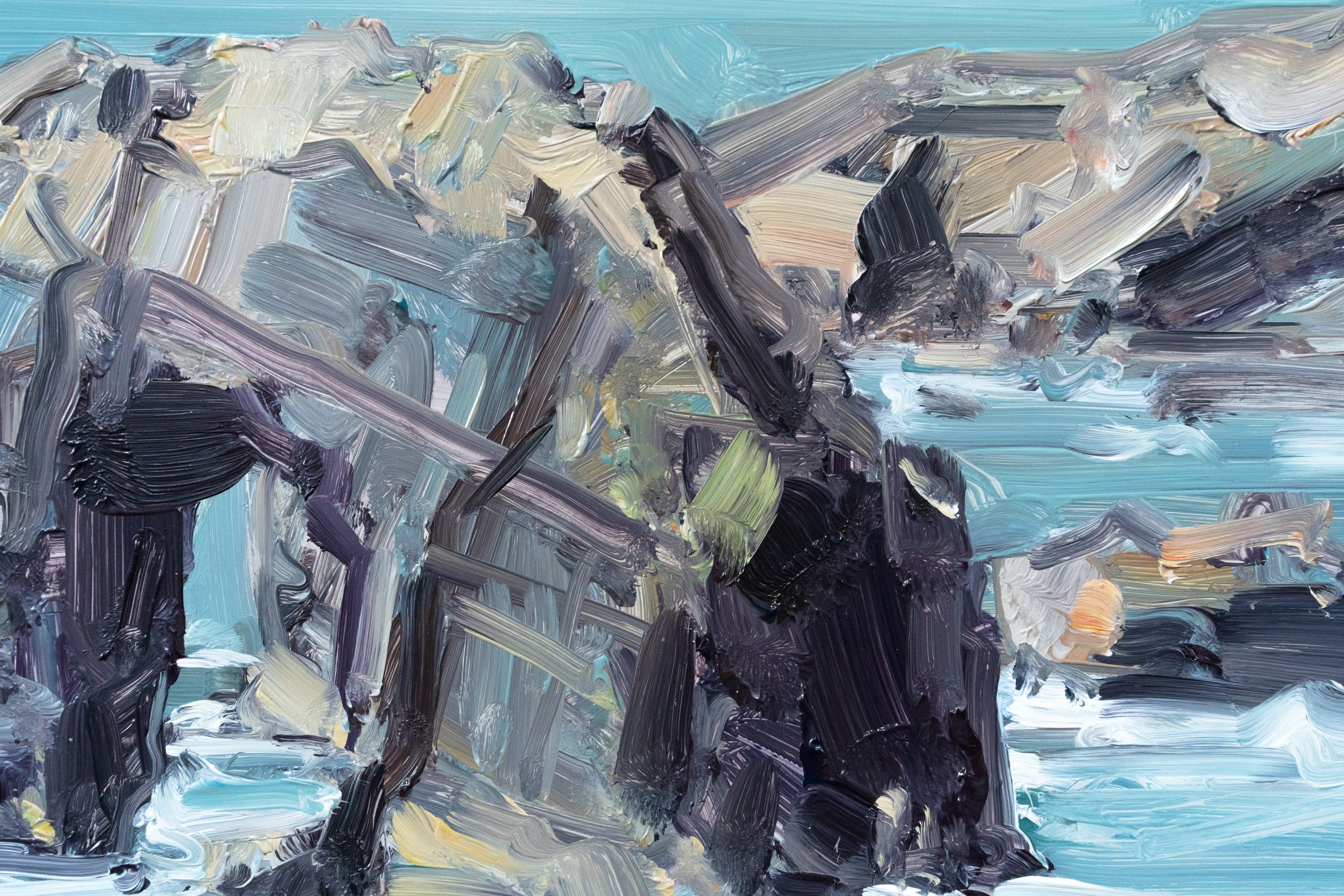 With a deliberate hand, but a stunningly, delicate touch, this extraordinarily competent and self-assured artist, Kaye Maahs, has produced this beautiful oil painting of a Kerry landmark ‘Virgin Rock’.