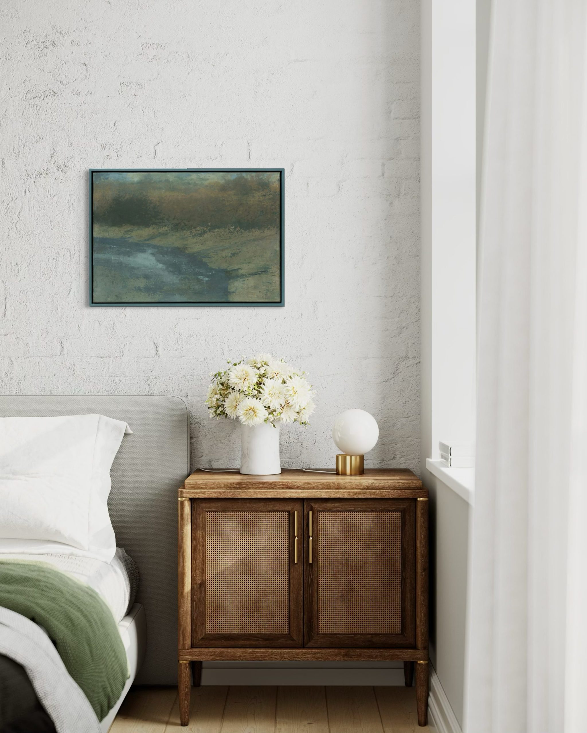 Water’s Edge’ – is another beautiful, painting in oils by the incredible Dorothy Ledwith; where the landscape meets the water.