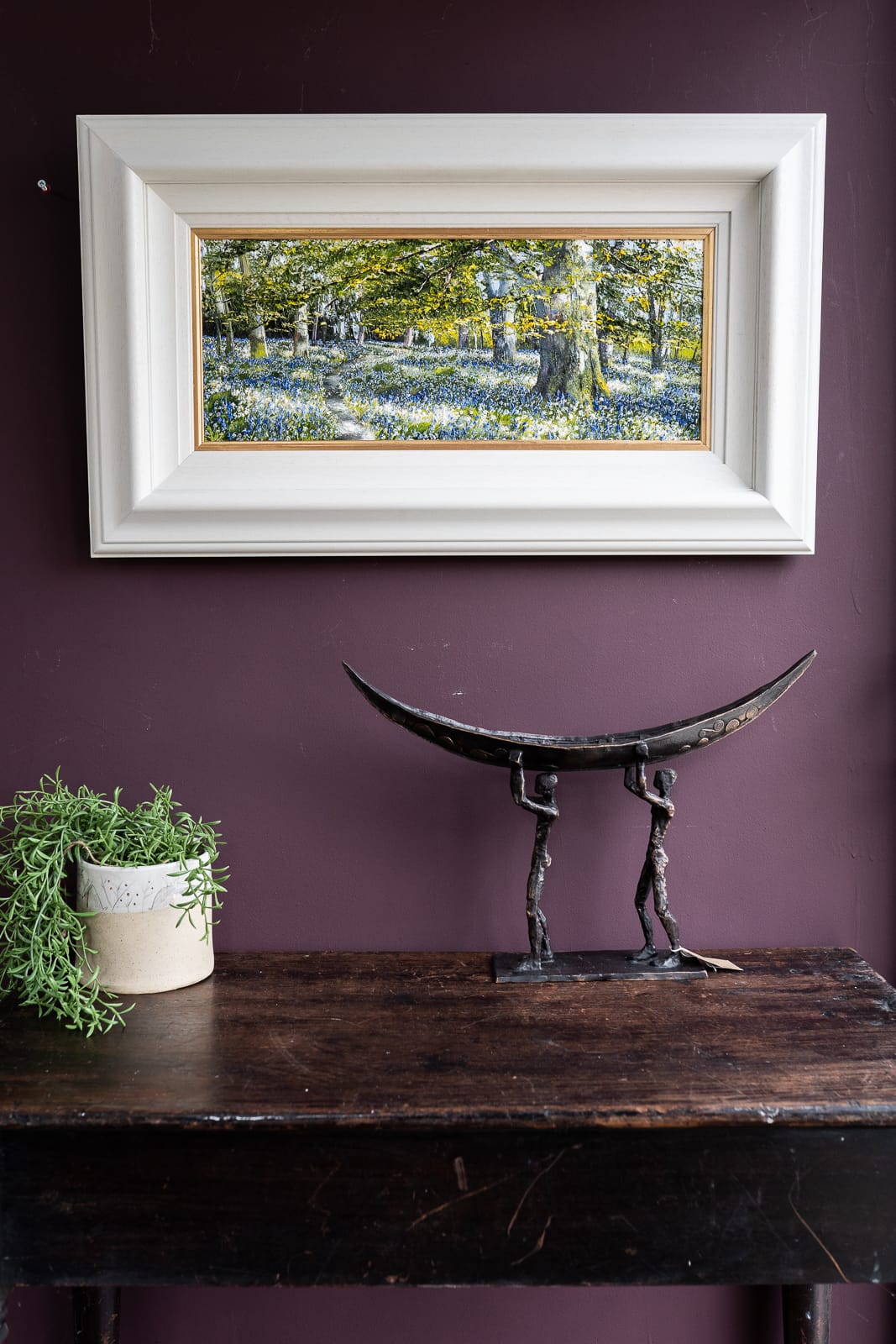 ‘Wild Garlic and Bluebells Ross Island’, has that sense of midday on a sunny summers afternoon, with light flooding through the trees and almost enticing you in to stroll through them.