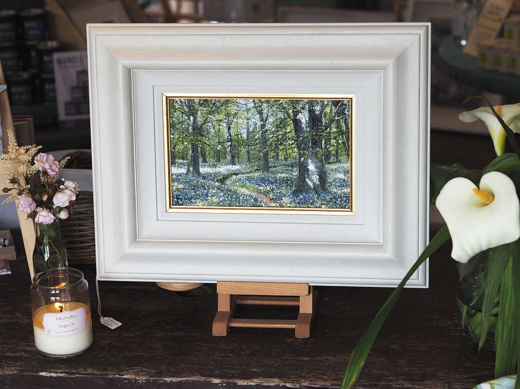 This stunning piece of original artwork is enticing and entrancing. The bouncing light is such that you would feel you could step inside and wander through those wild garlic and bluebells – can you imagine the scents and smells? The perfect size for placing on a sideboard on a mini easel perhaps or for hanging where you will be greeted with it on a regular basis, its hard not to love Mark Eldred’s work. We love having him on the walls here at the Kilbaha Gallery.