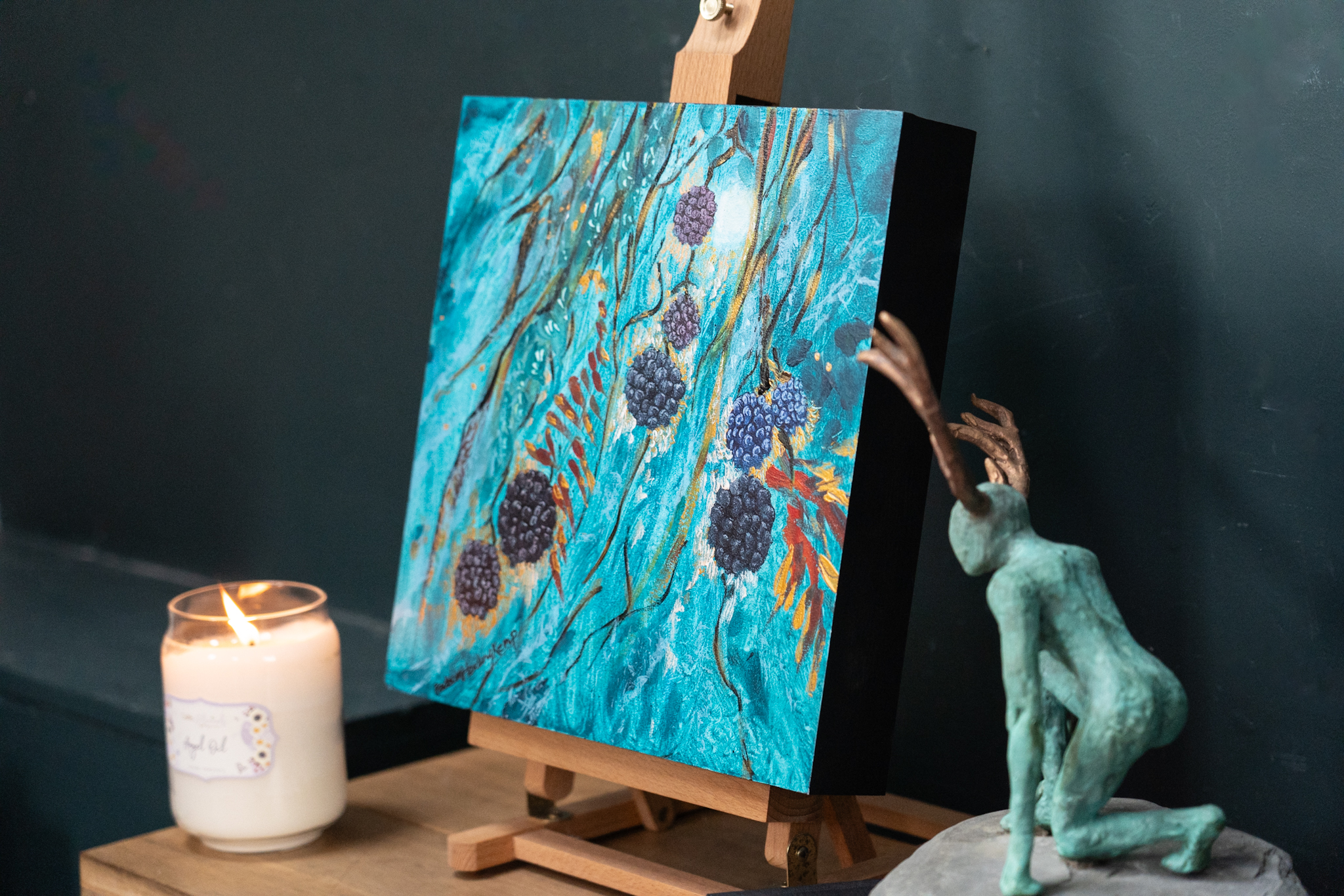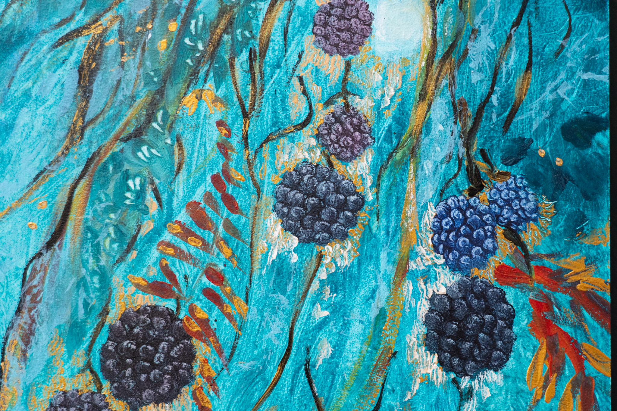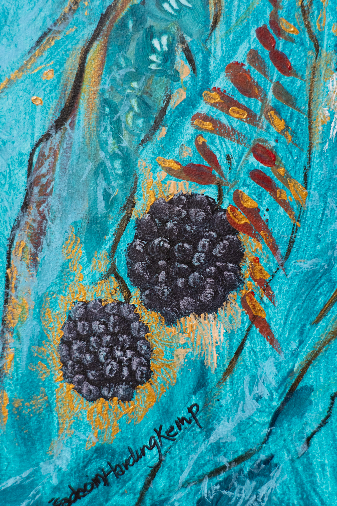 One of Eadaoin’s signature styles, is to play with perspective; particularly when it comes to her paintings of nature; placing some of the beautiful and more striking elements right in the immediate foreground and then taking your eye off into the rest of the painting in the distance. Eadaoin also draws on her expert knowledge of colour by bringing striking, rich tones to her work.